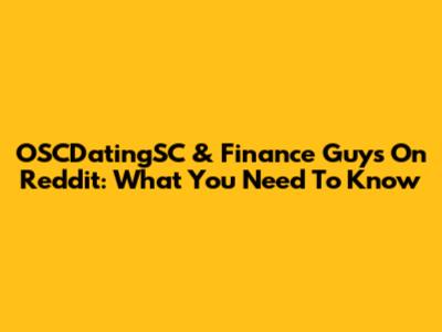 OSCDatingSC & Finance Guys On Reddit: What You Need To Know