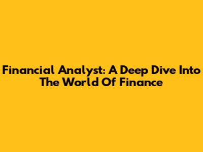 Financial Analyst: A Deep Dive Into The World Of Finance