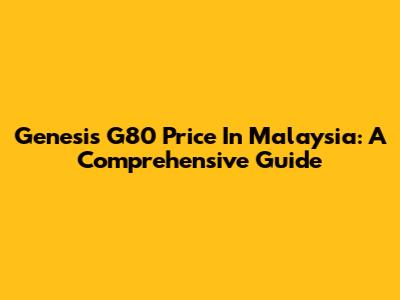 Genesis G80 Price In Malaysia: A Comprehensive Guide