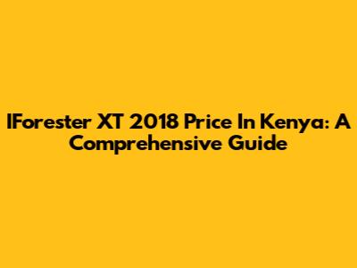 IForester XT 2018 Price In Kenya: A Comprehensive Guide