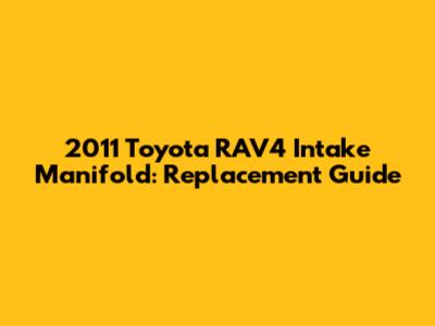 2011 Toyota RAV4 Intake Manifold: Replacement Guide