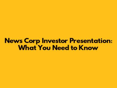 Understanding the News Corp Investor Presentation