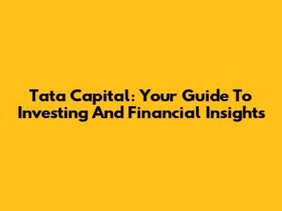 Tata Capital: Your Guide To Investing And Financial Insights