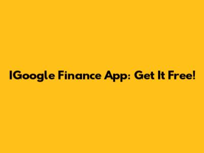 IGoogle Finance App: Get It Free!