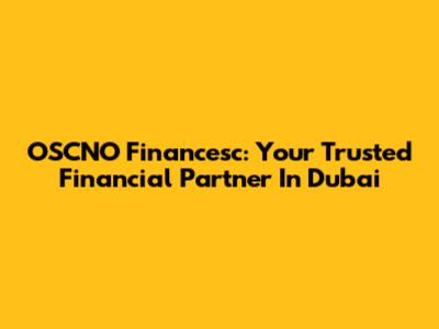 OSCNO Financesc: Your Trusted Financial Partner In Dubai