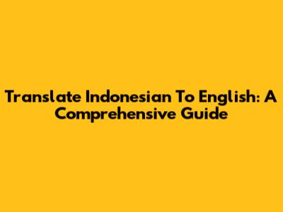 Translate Indonesian To English: A Comprehensive Guide