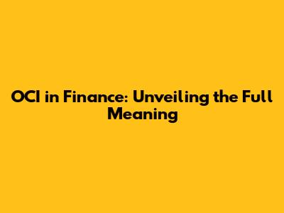 What is OCI in Finance? Decoding the Basics