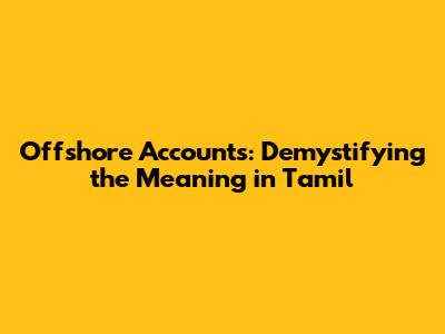 Hey guys! Ever heard of offshore accounts and wondered what they're all about? Especially if you're curious about how it works in a Tamil context, you've come to the right place. Let's dive deep into the meaning of offshore accounts, their benefits, the nitty-gritty details, and whether they might be a good fit for you. We'll break down everything in a way that's easy to understand, no matter your background. Think of this as your friendly guide to understanding offshore accounts and how they relate to you. So, what exactly is an offshore account, and why are people talking about them?