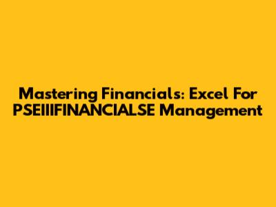 Mastering Financials: Excel For PSEIIIFINANCIALSE Management