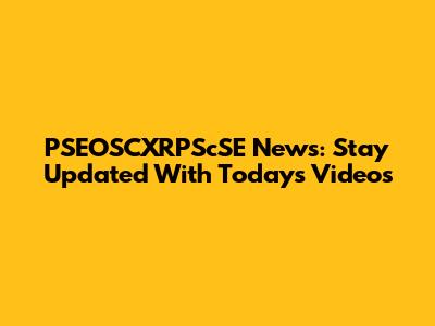 PSEOSCXRPScSE News: Stay Updated With Today's Videos