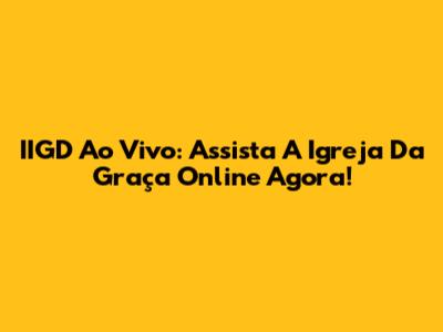 IIGD Ao Vivo: Assista A Igreja Da Graça Online Agora!