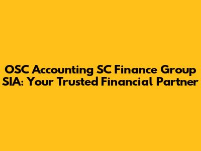 Hey guys! Are you looking for a reliable financial partner to help navigate the complexities of accounting and finance? Look no further! OSC Accounting SC Finance Group SIA is here to provide comprehensive solutions tailored to your specific needs. Whether you're a small business owner, a growing startup, or an established corporation, understanding the ins and outs of financial management is crucial for success. OSC Accounting SC Finance Group SIA steps in as that trusted partner, offering a range of services designed to streamline your financial processes and empower you to make informed decisions. In this article, we'll dive deep into what makes OSC Accounting SC Finance Group SIA a leading player in the industry and how they can help you achieve your financial goals. So, let’s get started and explore the world of financial expertise offered by OSC Accounting SC Finance Group SIA!