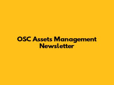 Hey guys! Welcome to your go-to resource for everything OSC Assets Management. In today's fast-paced world, staying informed about your investments and assets is crucial. This newsletter is designed to provide you with the latest insights, news, and strategies to help you make the most of your assets. Whether you're a seasoned investor or just starting out, we've got something for everyone. Think of this as your friendly neighborhood guide to navigating the world of asset management. We'll break down complex topics into easy-to-understand nuggets of information, so you can feel confident and empowered in your financial decisions. We're not just about throwing numbers at you; we're about building a community where we can all learn and grow together. So, grab your favorite beverage, settle in, and let's dive into the exciting world of OSC Assets Management!