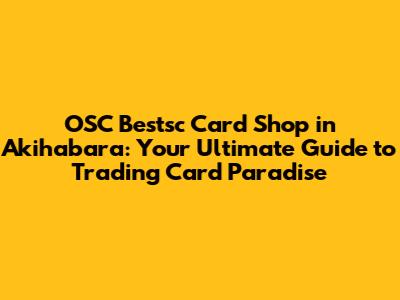 Hey card game enthusiasts! If you're anything like me, the thrill of the hunt for rare trading cards is something that gets your heart racing. And if you're planning a trip to the electric town of Akihabara in Tokyo, Japan, you absolutely cannot miss out on a visit to the OSC Bestsc card shop. Seriously, guys, it's a haven for card collectors, a treasure trove of Japanese cards, and a guaranteed good time. Let's dive deep into what makes this shop so special, and why it should be at the top of your Akihabara itinerary.