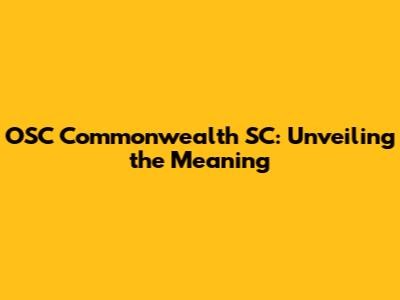 Hey guys! Ever stumbled upon the term “OSC Commonwealth SC” and felt a bit lost? Don’t worry, you're definitely not alone. It sounds pretty official, right? Well, let's break it down in simple terms. This article is all about decoding what OSC Commonwealth SC actually means, why it matters, and where you might encounter it. We'll ditch the confusing jargon and get straight to the good stuff, making sure you understand everything clearly. So, buckle up and get ready to unravel this mystery! This is going to be epic!