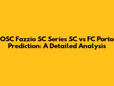Hey everyone! Are you ready for a deep dive into the upcoming match between OSC Fazzio SC Series SC and FC Porto? This is gonna be a good one, and we're here to break down everything you need to know before the whistle blows. We'll be looking at team form, key players, potential strategies, and, of course, our prediction for the match. So, grab your snacks, get comfy, and let's get started. This analysis will help you understand the game better and maybe even impress your friends with your football knowledge. Ready to analyze OSC Fazzio SC Series SC vs FC Porto? Let's go!