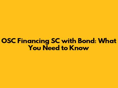How OSC Financing SC with Bond Works