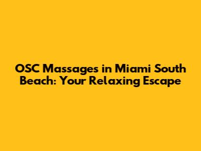 Hey guys! Are you looking for the ultimate relaxation experience in the vibrant heart of Miami South Beach? Look no further! We're diving deep into the world of OSC massages, uncovering why they're the go-to choice for locals and tourists seeking rejuvenation and stress relief. Whether you're a seasoned massage enthusiast or a newbie eager to explore the benefits, this guide will provide you with everything you need to know about OSC massages in Miami South Beach.