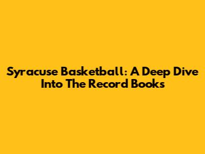Syracuse Basketball: A Deep Dive Into The Record Books