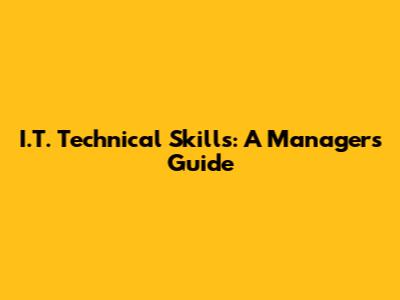 I.T. Technical Skills: A Manager's Guide
