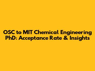 Hey guys! So, you're probably here because you're curious about getting into the MIT Chemical Engineering PhD program from the Oklahoma School of Science and Mathematics (OSC). It's a fantastic goal, and MIT's ChemE program is definitely a top-tier choice. Landing a spot there is super competitive, so let's dive into what it takes, focusing particularly on applicants coming from OSC. We'll break down the factors that influence admissions, give you an idea of the acceptance rates, and offer some solid tips to boost your chances. Think of this as your friendly guide to navigating the challenging but rewarding path to MIT ChemE!