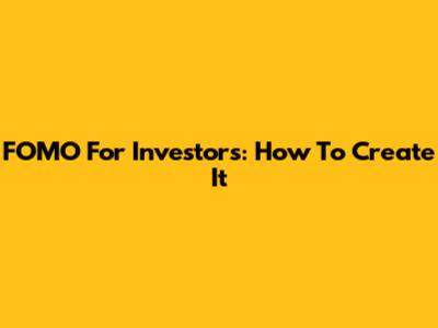 FOMO For Investors: How To Create It