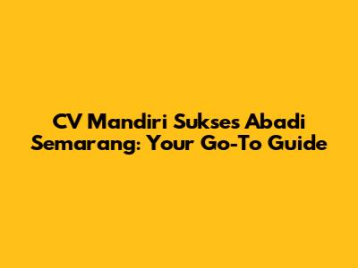 CV Mandiri Sukses Abadi Semarang: Your Go-To Guide
