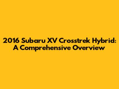 2016 Subaru XV Crosstrek Hybrid: A Comprehensive Overview