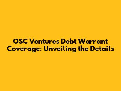 Hey there, finance enthusiasts and curious minds! Let's dive deep into OSC Ventures debt warrant coverage. If you're scratching your head about what that even means, don't worry, we'll break it down in a way that's easy to understand. We'll explore the nitty-gritty of debt warrants, how they work in the context of OSC Ventures, and why understanding this is crucial for anyone interested in the financial landscape. Buckle up, because we're about to embark on an informative journey! This article aims to provide a clear and concise overview, shedding light on this intricate financial instrument and its implications. So, what exactly is OSC Ventures debt warrant coverage, and why should you care? Let's find out!