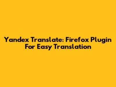 Yandex Translate: Firefox Plugin For Easy Translation