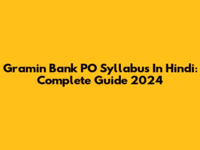Gramin Bank PO Syllabus In Hindi: Complete Guide 2024