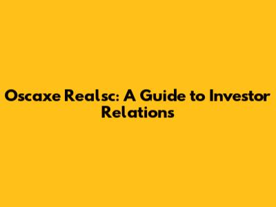 Hey guys! Let's dive into the world of Oscaxe Realsc and explore what investor relations really means for this company. If you're looking to understand how Oscaxe Realsc communicates with its investors, you're in the right place. We’ll break down everything you need to know in a way that’s super easy to understand. So, let’s get started!