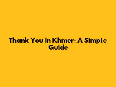 Thank You In Khmer: A Simple Guide