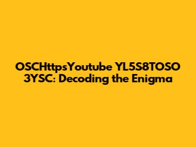 What Exactly Is OSCHttpsYoutube YL5S8TOSO 3YSC?