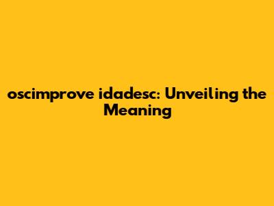 Understanding the nuances of specific terms and acronyms is crucial in many fields, and "oscimprove idadesc" is no exception. In this comprehensive guide, we will dissect this term, exploring its origins, applications, and significance. Whether you're a seasoned professional or a curious learner, this article aims to provide a clear and insightful understanding of what "oscimprove idadesc" truly means.