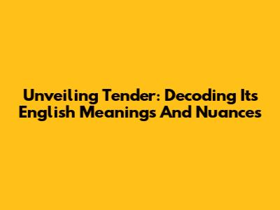 Unveiling 'Tender': Decoding Its English Meanings And Nuances