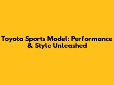 Toyota Sports Model: Performance & Style Unleashed
