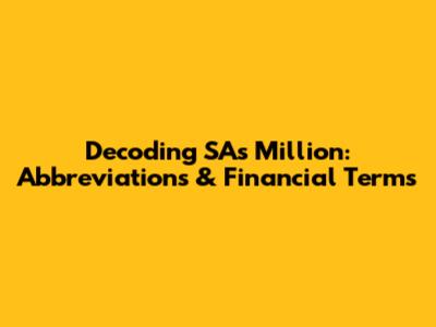 Decoding SA's 'Million': Abbreviations & Financial Terms