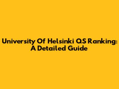 University Of Helsinki QS Ranking: A Detailed Guide