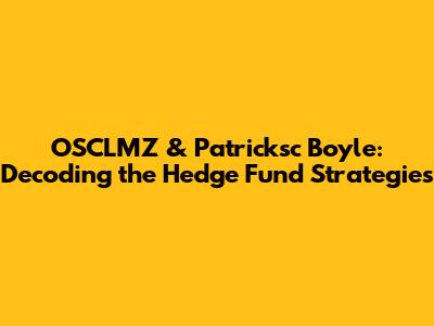 Hey guys, let's dive into the fascinating world of OSCLMZ and Patricksc Boyle, and what makes their hedge fund strategies tick. We'll explore the core concepts, the investment approaches they use, and how they navigate the complex landscape of financial markets. Buckle up, because we're about to embark on a journey through the world of high finance. This exploration aims to uncover the secrets behind their success, breaking down the jargon and making the strategies accessible. Understanding these approaches can offer a glimpse into the minds of successful investors and provide insights into how to approach market fluctuations. It's like peeking behind the curtain to see how the financial wizards work their magic. We're going to explore the critical aspects of their strategies, from the initial investment decisions to the final execution, shedding light on the intricacies of their methodologies. Get ready to have your understanding of hedge funds transformed from something mysterious to something understandable. The aim is to equip you with the knowledge to appreciate the sophistication and complexities that govern these high-profile investment vehicles.