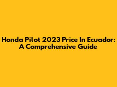 Honda Pilot 2023 Price In Ecuador: A Comprehensive Guide