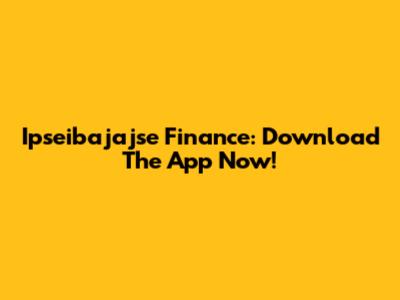 Ipseibajajse Finance: Download The App Now!