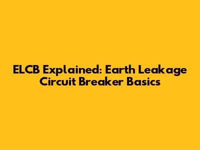 ELCB Explained: Earth Leakage Circuit Breaker Basics