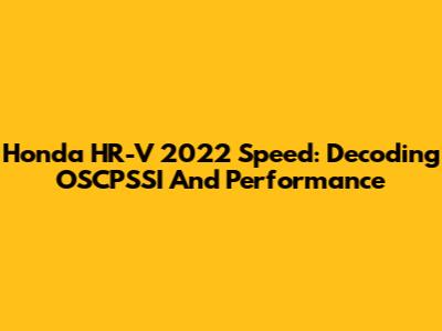 Honda HR-V 2022 Speed: Decoding OSCPSSI And Performance