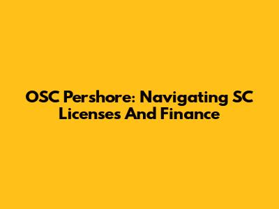 OSC Pershore: Navigating SC Licenses And Finance