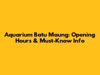 Aquarium Batu Maung: Opening Hours & Must-Know Info