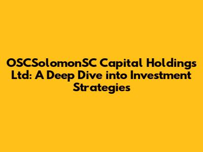 Hey everyone! Let's dive into the world of finance, specifically focusing on OSCSolomonSC Capital Holdings Ltd. This isn't just about throwing money around; it's about understanding how investments work, the strategies employed, and what makes a company like OSCSolomonSC tick. We'll break down the basics, explore some common investment approaches, and even touch upon what to look for when choosing where to put your hard-earned cash. So, buckle up, because we're about to embark on a journey through the often-complex landscape of financial holdings.