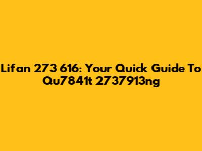 Lifan 273 616: Your Quick Guide To Qu7841t 2737913ng