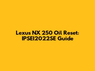 Lexus NX 250 Oil Reset: IPSEI2022SE Guide