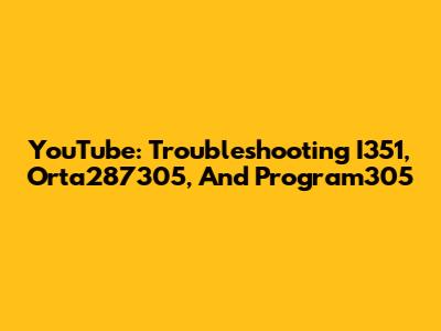 YouTube: Troubleshooting I351, Orta287305, And Program305